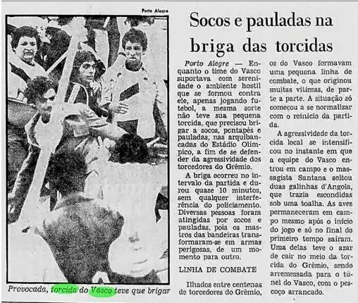 DIA 31 DE JULHO DE 1978: No Estádio Olímpico, em Porto Alegre, uma sequencia de cenas de violência para Bareta e Kojak, nenhum botar defeito. A cores, via Embratel, a televisão mostrava para todo Brasil o jogo em que o Vasco e Grêmio disputavam o direito de passar as semifinais do Campeonato Brasileiro. E, embora o jogo tenha sido disputado com rispidez, em termos de violência o que ocorreu dentro de campo perdeu de goleada para o que se viu nas arquibancadas.