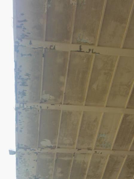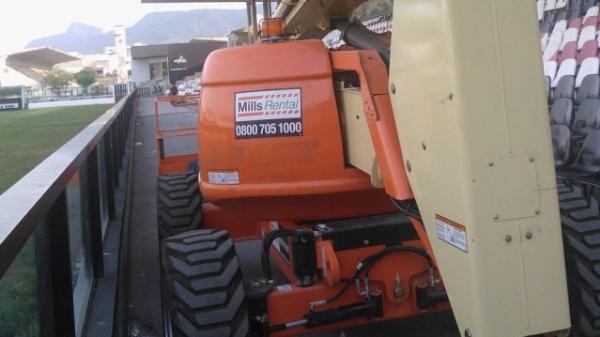 Durante a tarde desta segunda-feira, uma máquina ergueu dois operários para fazer reparos na marquise. O desgaste da estrutura é visível, com muitos pontos em que o vergalhão fica exposto.