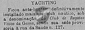 Nota da NETVASCO: O pesquisador Henrique Hübner, do blog Memória Vascaína (site Sempre Vasco), após cuidadosa pesquisa, localizou o prédio que serviu como primeira sede do Club de Regatas Vasco da Gama, ainda no ano de 1898. O imóvel ficava localizado na Rua da Saúde nº 127, que corresponde, nos dias atuais, à Rua Sacadura Cabral nº 167, na zona portuária do Rio de Janeiro. Apenas a fachada desse prédio ainda está de pé, e, assim mesmo, em estado bastante precário.