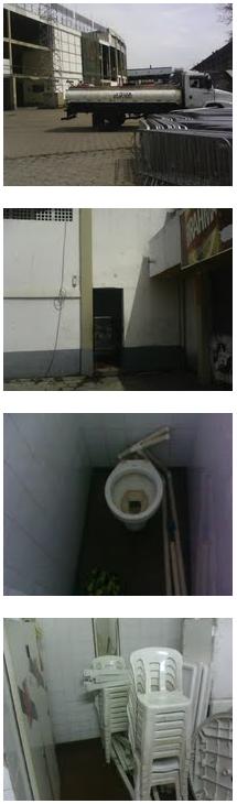 Além disso, vale ressaltar que o banheiro próximo ao local de treinamento está todo destruído e virou depósito de mesas e cadeiras.