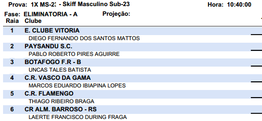 Confira o programa das provas desta sexta-feira no Brasileiro de Remo com a participação de atletas vascaínos: