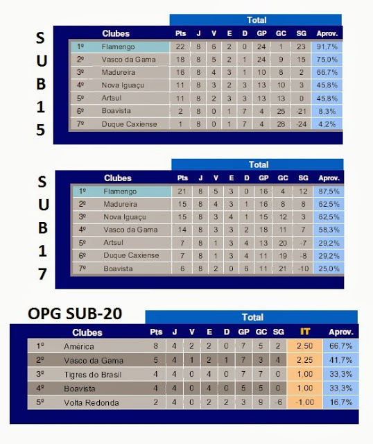 Confira a classificação da Taça Rio Sub-15, da Taça Rio Sub-17 e do Torneio OPG Sub-20: