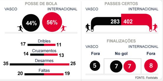 Confira estatísticas de Vasco 3 x 1 Internacional