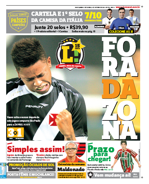 Veja como a imprensa destacou a vitória vascaína e a saída da zona do rebaixamento