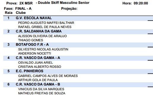 Vinte clubes e três Federações Estaduais participam do primeiro dia de finais, com 40 barcos do Rio presentes em 12 disputas. A única prova sem cariocas é a paralímpica do Single Skiff AS (para atletas que usam os braços), com quatro barcos de São Paulo (três do Bandeirante e um do Pinheiros) e um da Federação Paranaense.