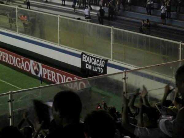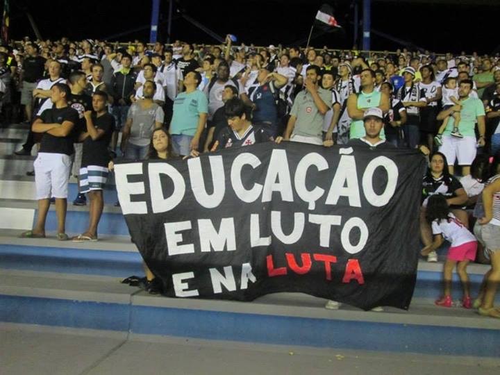 Torcedores vascaínos levaram ao Moacyrzão, em Macaé, durante o jogo Vasco 3 x 1 Inter, faixas em apoio ao movimento dos professores do município do Rio de Janeiro. A categoria se encontra em greve.