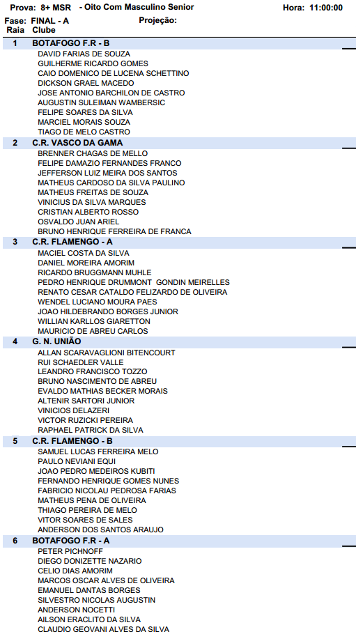 Confira a participação do Vasco nas finais do Brasileiro de Remo neste domingo: