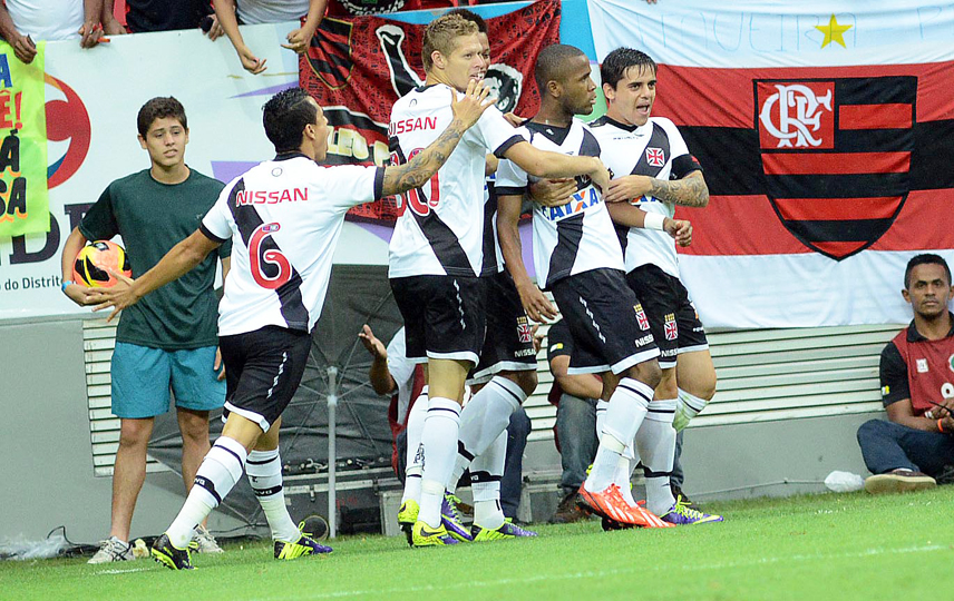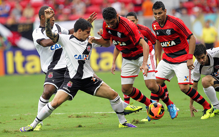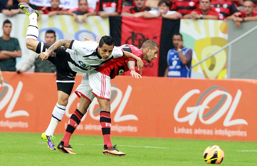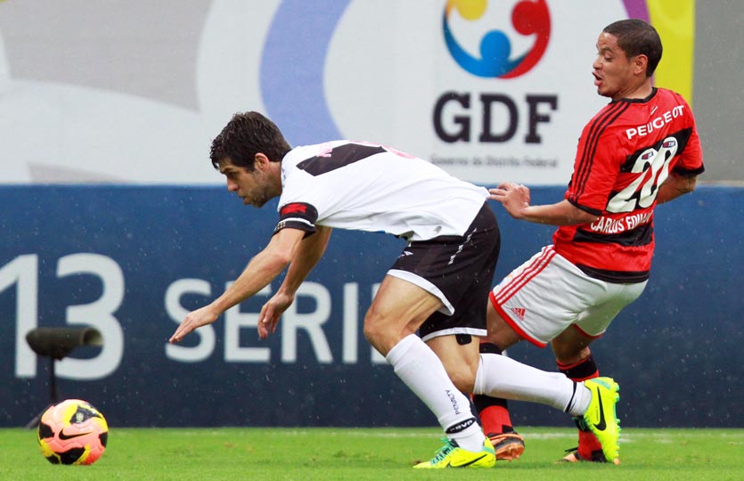 Flamengo e Vasco entraram em campo neste domingo à tarde no Mané Garrincha motivados pelas últimas vitórias. O torcedor de Brasília esperava um Clássico dos Milhões cheio de boas jogadas e emoções. Isso aconteceu mais no segundo tempo, quando o Vasco, em desvantagem na primeira etapa - Hernane abrira o placar -, esteve melhor, chegou ao empate com Willie e ficou mais perto de vencer, apesar da pressão rubro-negra no fim. Mas a partida, de baixo nível técnico, marcada pela rispidez, muito paralisada por faltas, ficou no 1 a 1. Resultado ruim que resume a campanha irregular das duas equipes no Campeonato Brasileiro.