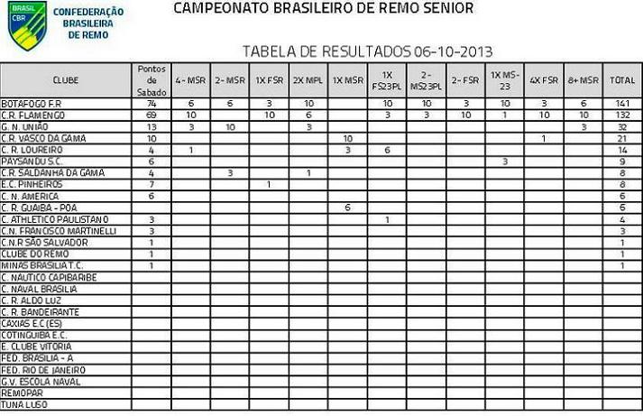 Classificação final oficial do Campeonato Brasileiro de Remo