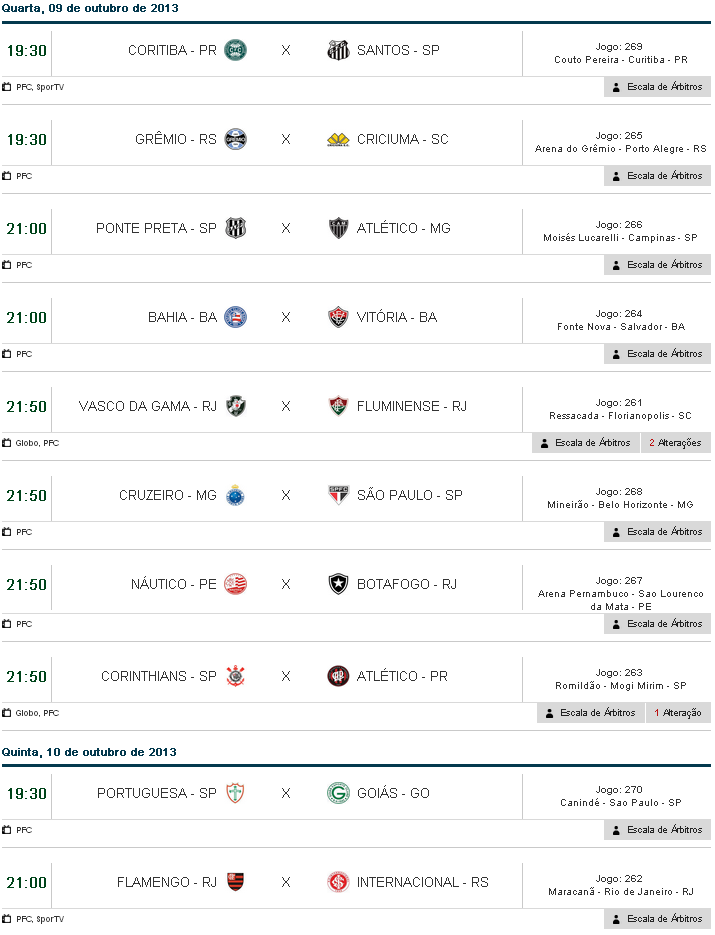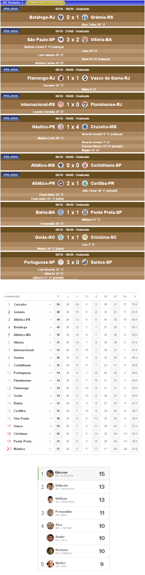 Terminada a 26ª rodada do Campeonato Brasileiro, a 7ª do returno, o Vasco, que empatou com o Flamengo por 1 a 1, caiu da 16ª para a 17ª colocação na tabela, voltando para a zona do rebaixamento.