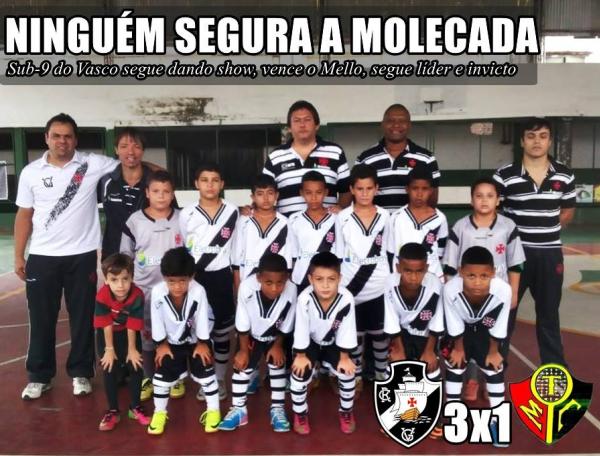 Está difícil segurar o Gigante da Colina no Estadual sub-11 de futsal. O Vasco alcançou sua nona vitória em nove jogos. A vítima da vez foi o Mello, em São Januário, no último sábado (05).