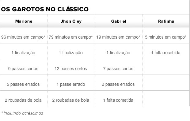 Dorival Júnior vem aproveitando jovens promessas vascaínas e encontrou uma boa forma de explorar o potencial de Jhon Cley e Malone no segundo tempo. Mais solta, a dupla se aproximou de Willie e Andre e criou boas situações. John Cley errou apenas um passe no jogo, e os dois contabilizaram, juntos, quatro roubadas de bola. No Flamengo, ao contrário, continua a saga em busca de um lugar para nomes como Gabriel e Rafinha no time. O primeiro ficou apenas 19 minutos em campo e pouco participou. Teve, ao menos, a chance de finalizar uma vez ao gol, em situação melhor do que Rafinha, que entrou já nos minutos finais e quase não foi notado.