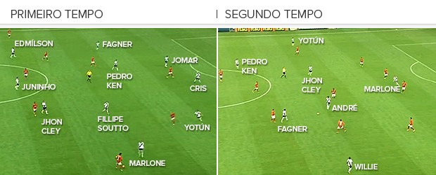 * Os laterais tiveram participação muito apagada na partida. Léo Moura até começou bem, mas caiu muito no segundo tempo. João Paulo foi pouco efetivo no apoio e ainda falhou no gol do Vasco. O vascaíno Yotún voltou a mostrar problemas no setor defensivo, e Fagner afunilou demais pelo meio, facilitando a marcação.