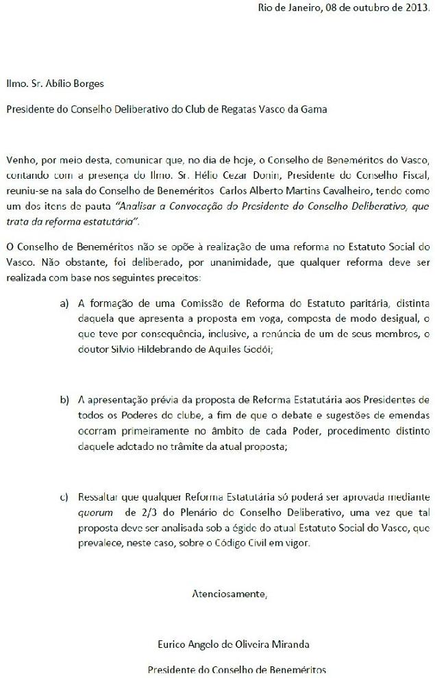 - 05/10/13Conselho de Beneméritos se reunirá na próxima 3ª, dia 08/10, às 11h30, em São Januário; veja convocação