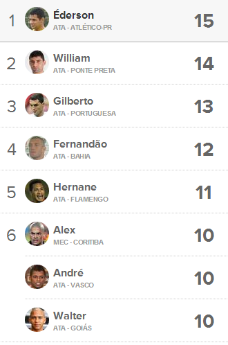 Com 10 gols marcados, André é o 6º colocado na artilharia ao lado de mais dois jogadores. O goleador máximo é Éderson, do Atlético-PR, com 15 gols.