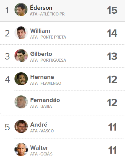 Com 11 gols marcados, André é o 5º colocado na artilharia ao lado de mais um jogador. O goleador máximo é Éderson, do Atlético-PR, com 15 gols.