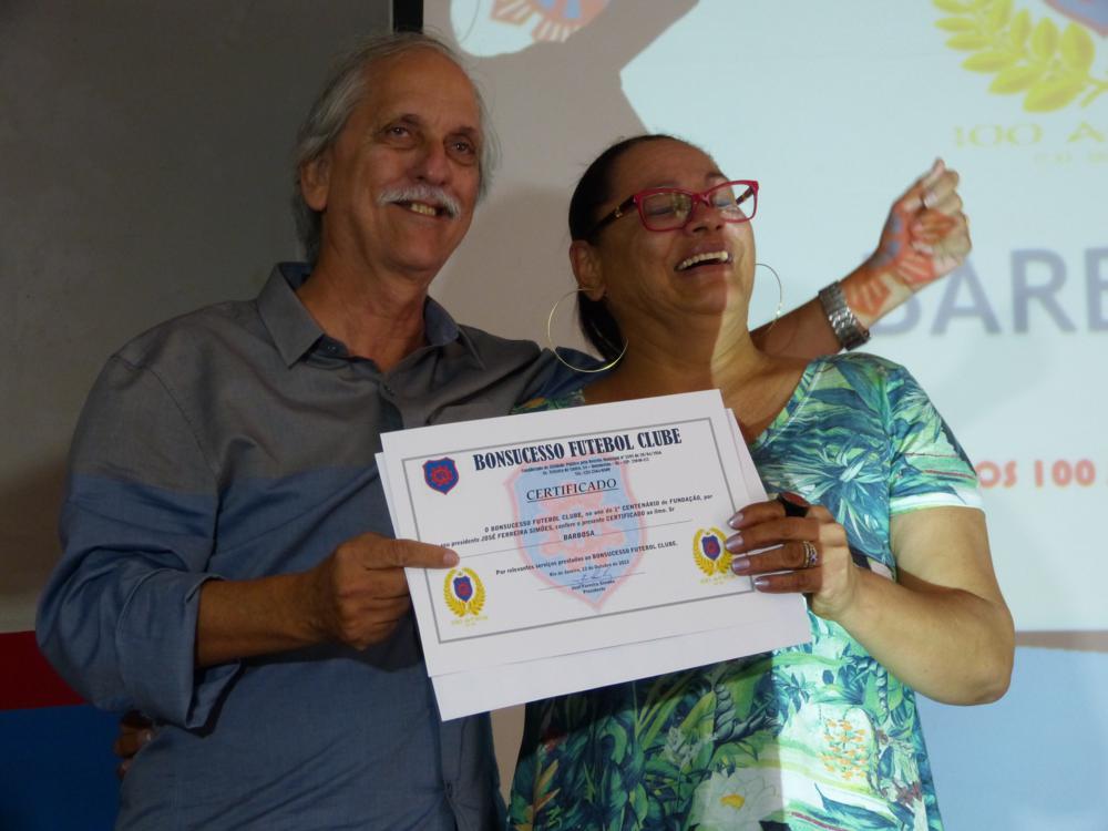 ![]() Teresa Borba, filha adotiva de Barbosa, recebe certificado do presidente do Bonsucesso |