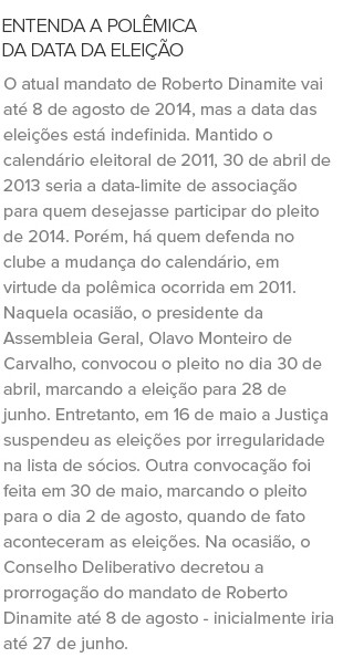 As últimas eleições no clube têm sido marcadas por denúncias e acusações. O conflito entre os grupos de Eurico e Roberto Dinamite (o antigo MUV - Movimento Unido Vascaíno, que se dividiu depois de eleito) é antigo. Em 2011, o Casaca!, grupo político de Eurico Miranda, fez diversas acusações à gestão do programa de sócios - mostrando carteiras sem foto, além da adesão de associados sem sobrenome ou CPF. Desta vez, ao que parece, não vai ser diferente.