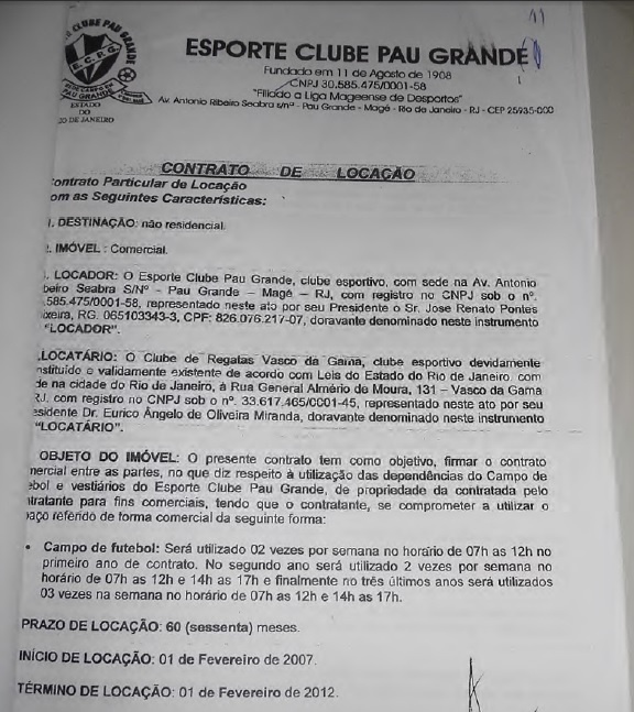 "O Vasco abandonou o local, não fizeram a rescisão e a dívida cresce a cada mês. Não podemos sequer locar para outra empresa em razão disso, pois o clube não deu baixa em absolutamente nada. É uma execução direta e precisa ser paga. O valor está bem próximo de meio milhão de reais. O que o Vasco pode discutir é o excesso de valores e possíveis penhoras. O prazo vai sair em uma nova carta precatória e o clube terá que tomar uma decisão. Diretores e até funcionários ligados ao presidente do Vasco podem receber a intimação normalmente", explicou o advogado do Esporte Clube Pau Grande, Julio Cesar Lemos.