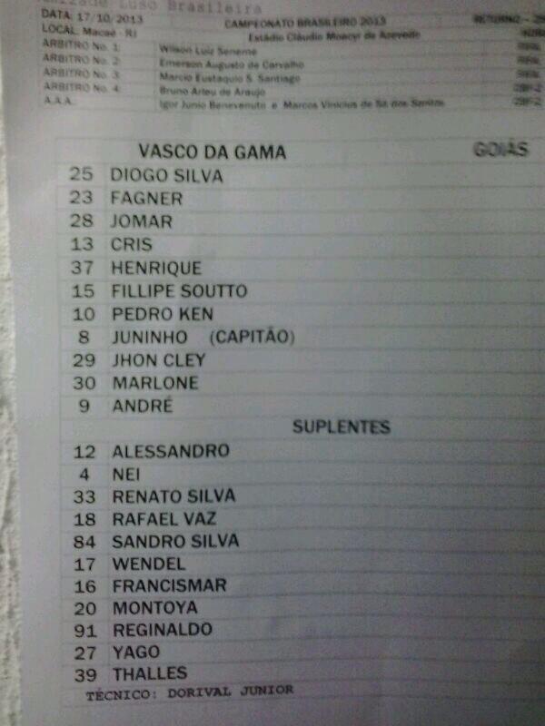 Confira escalação oficial do Vasco; jovens atacantes Yago e Thalles estão no banco