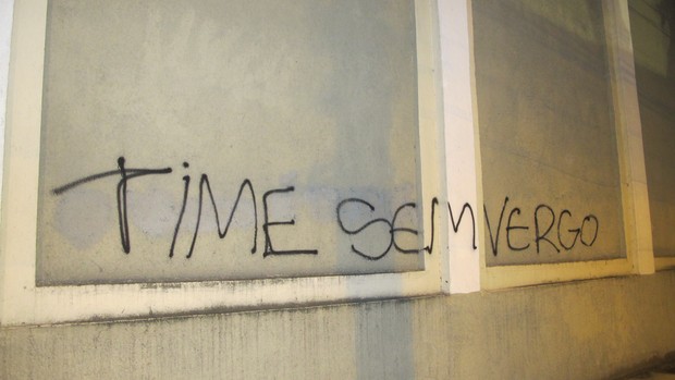O protesto que começou no estádio Cláudio Moacyr continuou em São Januário. Na madrugada desta sexta-feira, depois da derrota por 2 a 0 para o Goiás, em Macaé (RJ), um dos muros do estádio do Vasco estava pichado com a frase "Time sem vergonha".