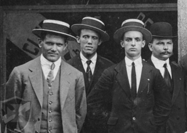 ![]() Marcílio Telles (de branco) em fevereiro de 1916 com a bandeira náutica |
