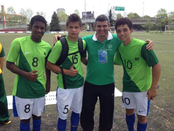 ![]() João Marcos (8), Felipe Ribeiro (5), Paulo Fernandes, o treinador da Seleção Brasileira e Marcos Yuri (10). |