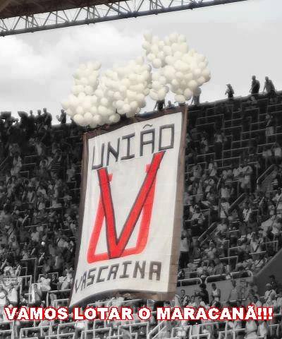 A Torcida Organizada União Vascaína, convoca todos os seus membros e simpatizantes, a estarem presentes, no jogo desta quinta feira entre Vasco x Goiás às 21h no estádio do Maracanã. Vamos lotar o estádio, fazer a festa com as nossas torcidas co-irmãs e independente da situação, vamos apoiar o VASCO acima de tudo em busca do bicampeonato da Copa do Brasil. Contamos com a presença de todos.