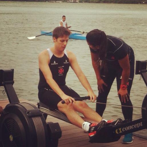 Na última 3ª-feira (22/10), o humorista vascaíno Fábio Porchat e os músicos Gaby Amarantes e César Menotti, participantes do quadro 'Medida Certa', do programa 'Fantástico', da TV Globo, fizeram um treino de remo na Lagoa Rodrigo de Freitas sob a supervisão da professora de remo do Vasco Natasha Carvalho Rosa. Veja fotos:
