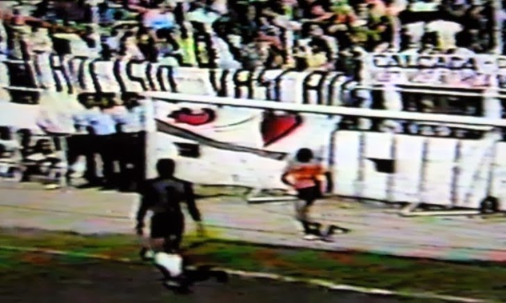 Nunca entendi a razão dessa faixa. Agora, já sei, é a manifestação de um torcedor que está com 16 anos, chama-se Tarcísio Vasconcelos, estudante da segunda série do 2º grau do Colégio Bennett.