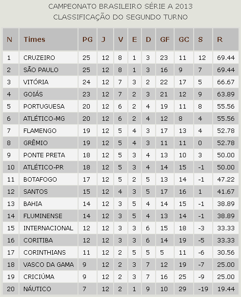 Vasco tem a 4ª pior campanha do returno do Campeonato Brasileiro
