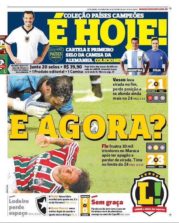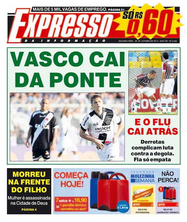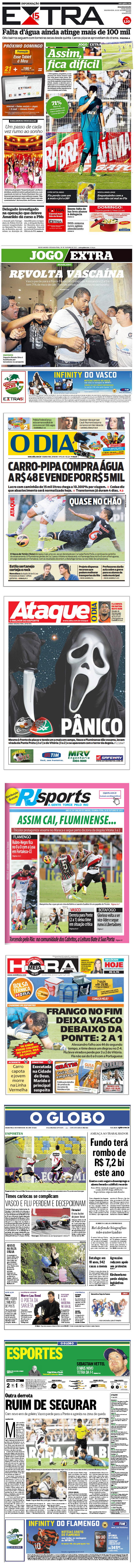 Veja como a imprensa destacou a derrota e a difícil situação do Vasco