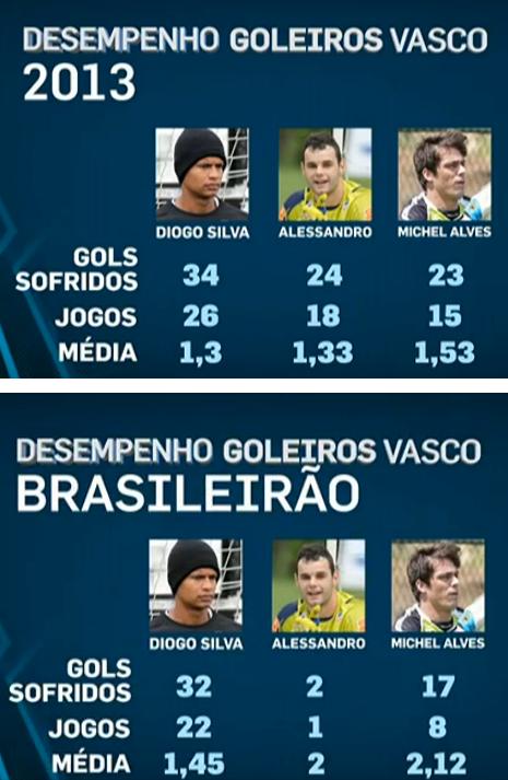 Michel Alves ainda é o dono da pior média de gols sofridos entre os goleiros do Vasco tanto no Brasileiro quanto na totalidade da temporada 2013: