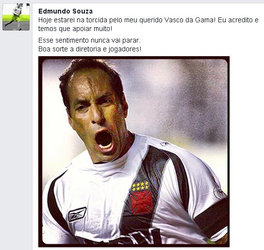 Edmundo publica mensagem de incentivo ao Vasco no Facebook