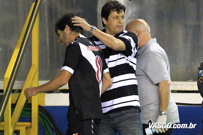 A partida começou com ingredientes dramáticos para o Vasco, mas terminou bem nos primeiros 45 minutos. Queria o técnico Adílson Batista mostrar na sua estreia um time mais ameaçador sob o comando, em campo, de Juninho. Queria a torcida que o Reizinho, com sua experiência, fosse o fiel condutor da reação. O camisa 8 parecia um pouco tenso no começo. Por duas vezes, foi advertido pelo árbitro. Pouco depois, aos 17 minutos, a triste, a pior notícia para o torcedor cruz-maltino: o ídolo sentira dor na virilha. Tentou alongar, o incômodo não passou. O sinal pedindo em direção ao banco pedindo a substituição soou como prévia de uma noite trágica no Moacyrzão. Adilson mandou Abuda aquecer e entrar, aos 18. A torcida se entreolhava, incrédula.