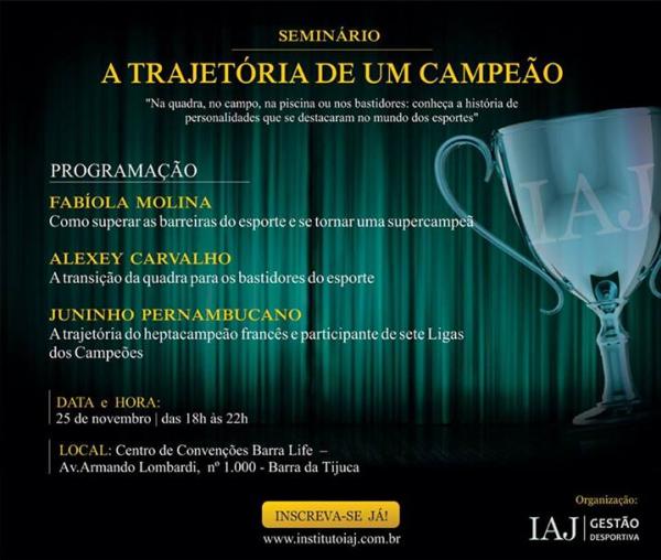 Juninho Pernambucano falará no seminário 'A trajetória de um campeão', que acontece no dia 25/11
