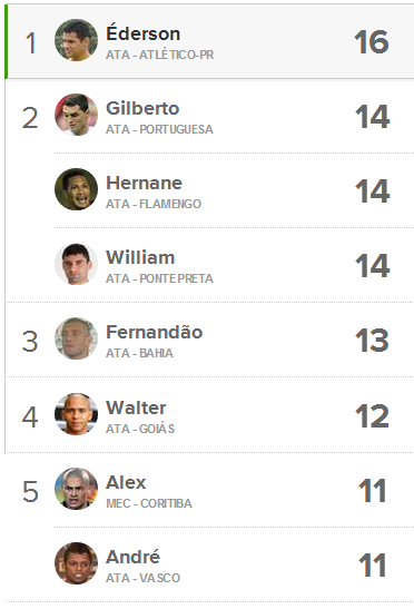 Com 11 gols marcados, André é o 7º colocado na artilharia ao lado de outro jogador. O goleador máximo é Éderson, do Atlético-PR, com 16 gols.