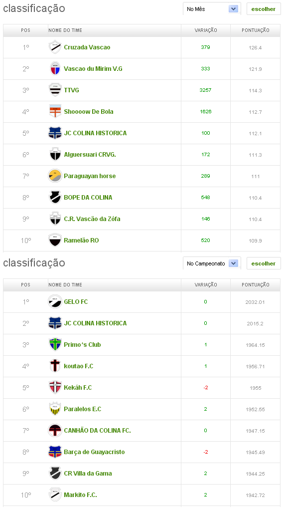 Confira, abaixo, a classificação (por mês e por campeonato) da Liga NETVASCO OFICIAL. Para participar, clique aqui.