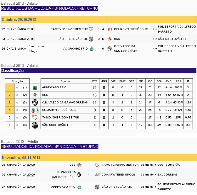 Tabela do Campeonato Estadual 2013