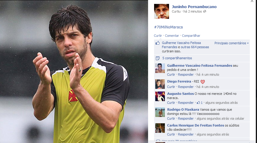 Fonte: Facebook do meia Juninho Pernambucano/Supervasco