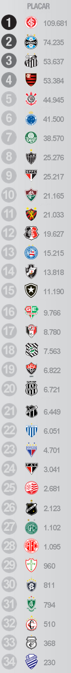 Com 13.818 sócios-torcedores, o Vasco se encontra atualmente na 14ª colocação no ranking do Movimento por um Futebol Melhor, da Ambev. Dos outros 11 clubes mais populares do Brasil, apenas o Botafogo está atrás do Gigante da Colina, figurando em 15º lugar.