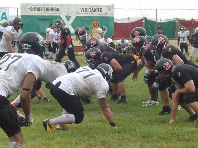 Bastou começar a partida para uma forte chuva cair e de certa forma prejudicar o jogo aéreo das duas equipes. Principalmente por parte da equipe paulista, que veio com seu plano de jogo voltado para o passe. Pelo lado vascaíno, o time explorou as corridas do RB#40 Romulo Ramos durante boa parte da primeira etapa, porém o corredor que terminou a partida com 19 corridas para um total de 80 jardas, não conseguiu furar a segunda linha de defesa corintiana.