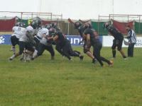 Mesmo com a chuva dando uma trégua na segunda etapa, o plano de jogo das duas equipes foram mantidas, por terra eram a principais chamadas ofensivas. No terceiro quarto, ficou o registro de uma tentativa de passe pela lateral do QB#8 Roni interceptado pelo LB#54 Weapon X.
