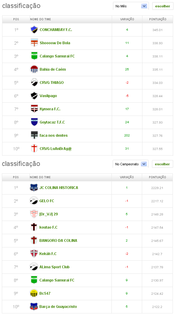 • 15/10/13Cartola FC: Confira a classificação da Liga NETVASCO OFICIAL