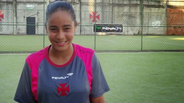 "Comecei a jogar bola por conta do meu pai, ele sempre jogou bola. Ele me levava para acompanhar os jogos e isso fez surgir um grande amor dentro de mim. Comecei a jogar bola aos cinco anos de idade numa escolinha que só tinha meninos. Cheguei no Vasco através de um amigo do meu pai. Ele tinha visto que o Vasco estava fazendo peneira e falou para meu pai. Ele viu, me mostrou e eu me interessei muito. Antes disso eu já tinha jogado contra o Vasco na Copa Coca-Cola. Foi lá que eu conheci o Tony, que hoje é meu treinador. Ele chegou a me chamar para jogar no Vasco na época, mas eu morava muito longe e não tinha como ir na época. Consegui superar esse problema e comecei a jogar no Vasco em novembro de 2012".