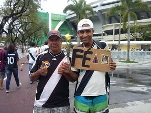 Apesar da presença em número não tão grande, no entorno do Maracanã, torcedores mostravam confiança antes do importante duelo desta noite, contra o Cruzeiro. Até Caíque, torcedor-símbolo do Vasco, acompanhado, como sempre, da sua placa com a palavra "Fé". E, como sempre, ele demonstrou confiança num bom resultado.