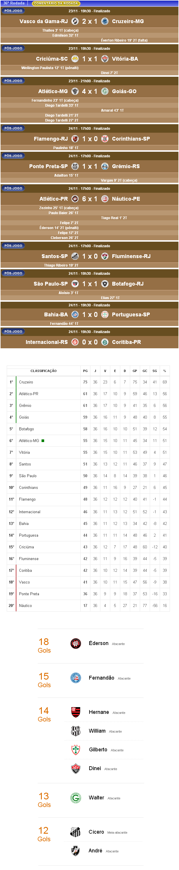 Fonte: NETVASCO (texto), Futebol Interior (resultados, autores dos gols), UOL (classificação, artilharia), CBF (próximos jogos)
