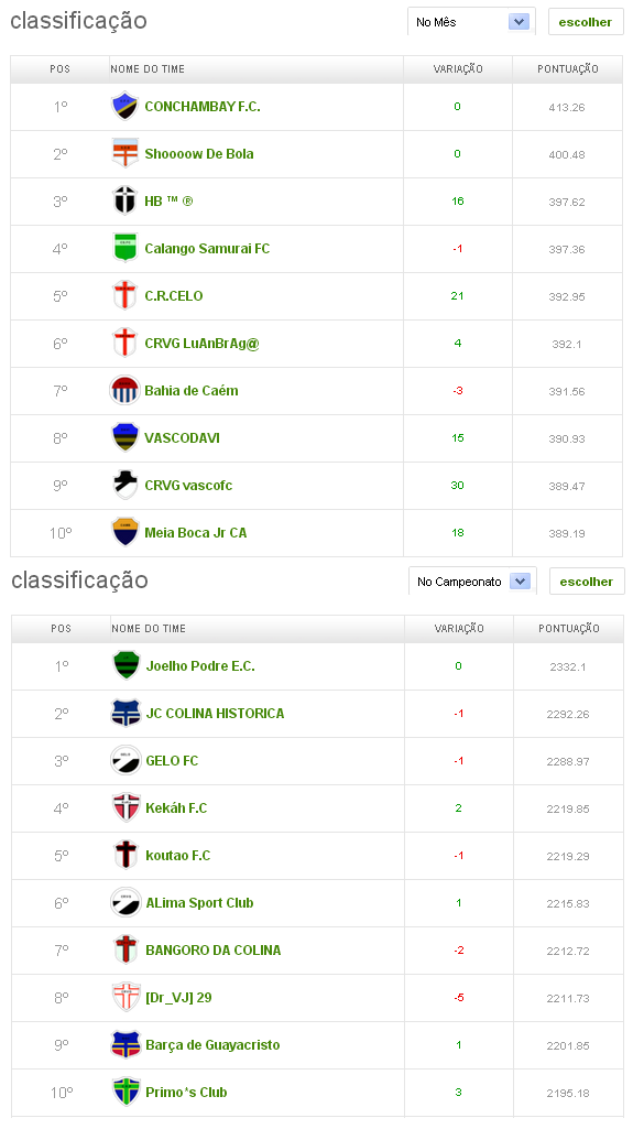 • 15/10/13Cartola FC: Confira a classificação da Liga NETVASCO OFICIAL