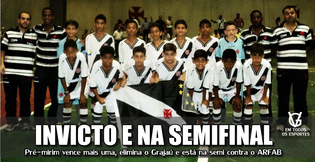 O pré-mirim de futsal Cruzmaltino segue dando provas de que é o time a ser batido no Estadual 2013. Após ter goleado o Grajaú Country, na casa do adversário, por 6 a 2, o Vasco necessitava apenas de um simples empate para garantir sua vaga na semifinal, o que não aconteceu, pois o Vasco venceu novamente.