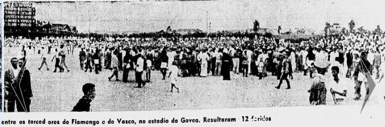 Uma verdadeira batalha de tijolos foi travada entre as Torcidas do Flamengo e do Vasco, no Estádio da Gávea. Resultado 12 feridos.